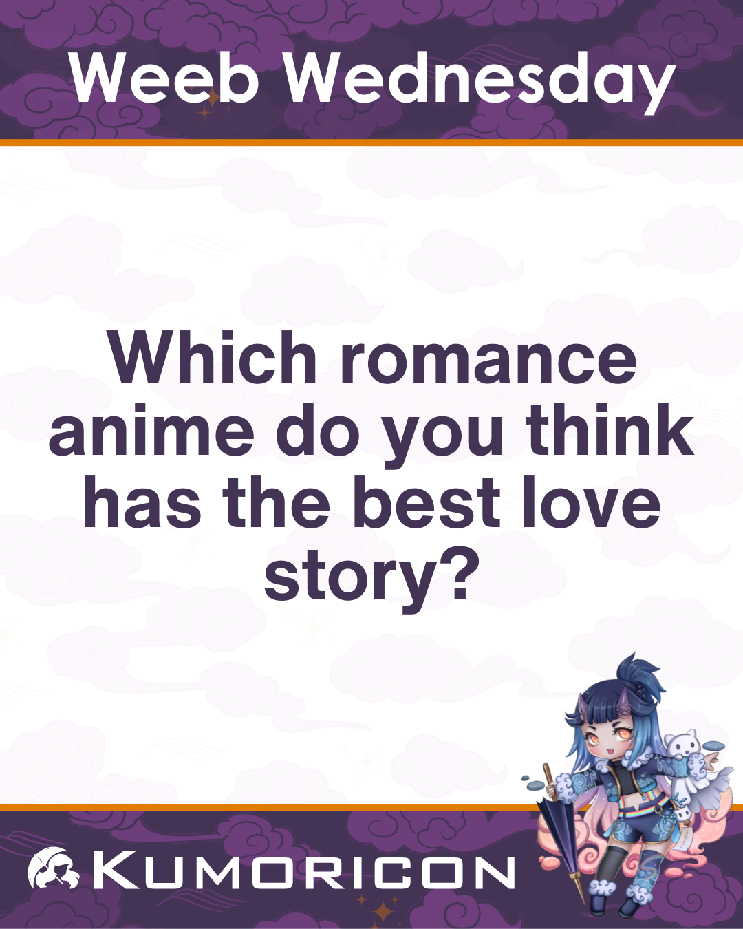 Weeb Wednesday: Which romance anime do you think has the best love story? #Kumoricon #Kumoricon2026 #AnimeConvention #PDX #JapaneseCulture #OregonConventionCenter #PDXCosplay #PDXLife #PDXLove #AnimeCon #Otakus #ConventionReady #Otaku4Life